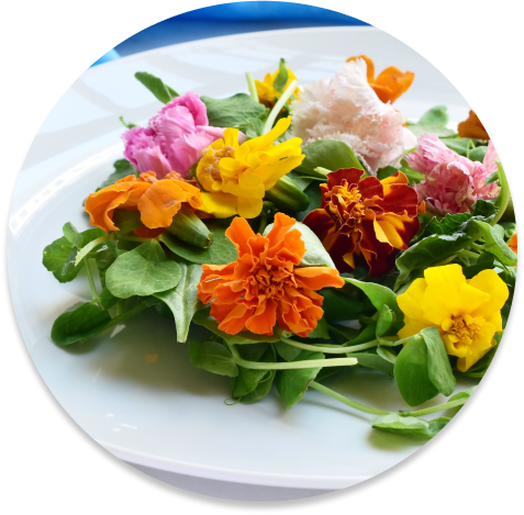 菊花・菜の花・花柚子など、食用やあしらいとして用いる花もご用意しております。またエディブルフラワーやベルローズなどもお取り扱いしております。